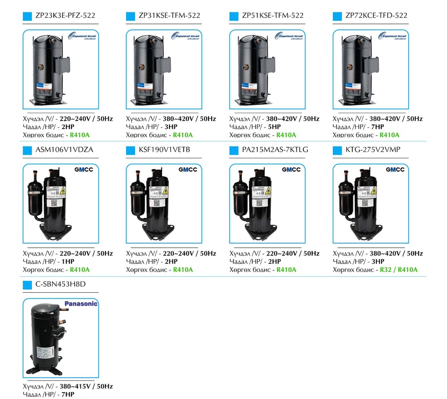 Copeland, GMCC, Panasonic брэндийн ЭЙР КОНДИЦИОНЕРИЙН МОТОР
